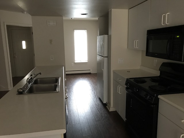 These units have 2 bedrooms, a kitchen, dining room, and living room. Both bathrooms and bedrooms are located upstairs, and the master bedroom has a private bathroom. These units also have a full basement with a washer and dryer hook-up. The kitchen has a dishwasher and built in microwave. Each apartment has its own walk out deck. These units include the heat with the rent. These units are $1500 per month with heat included. Residents are responsible for electricity, which includes hot water, water and sewer. The units here are pet friendly with a $100 pet fee.